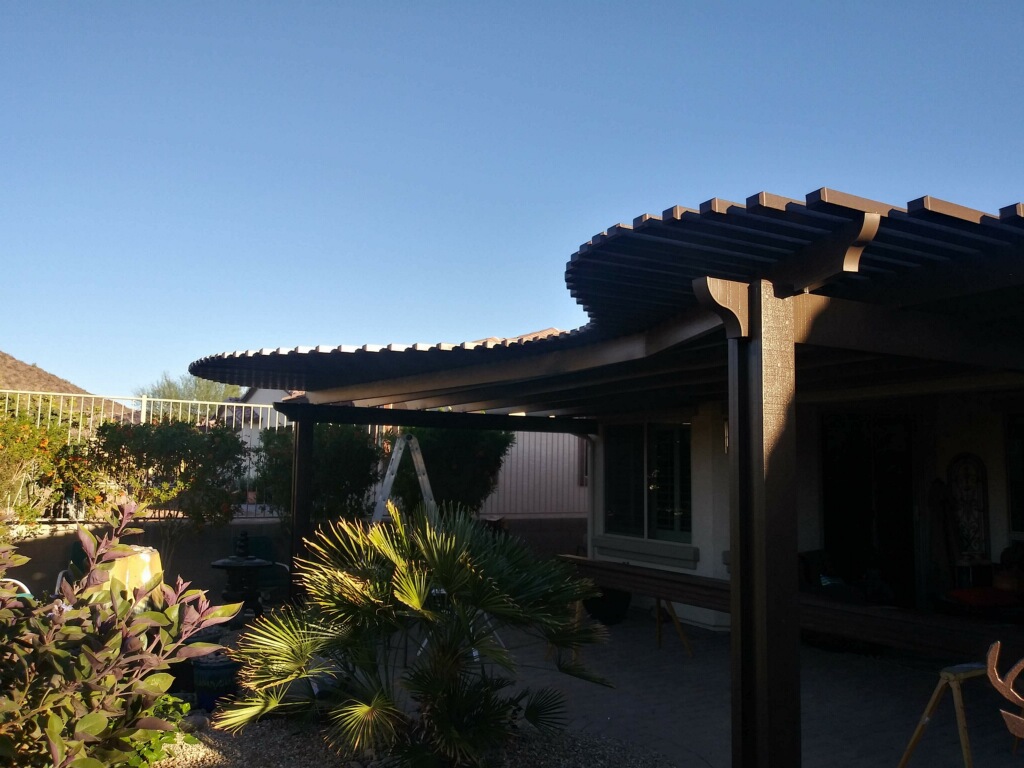 Alumawood is the original and leading brand name for wood-grained aluminum patio covers. It is embossed, painted, and manufactured to resemble cedar wood. The finished product is a beautiful, long-lasting shade cover requiring minimal maintenance.